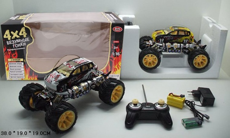 Модель движется во всех направлениях, обладает высокой проходимостью, благодаря полному приводу, управление с помощью пульта.