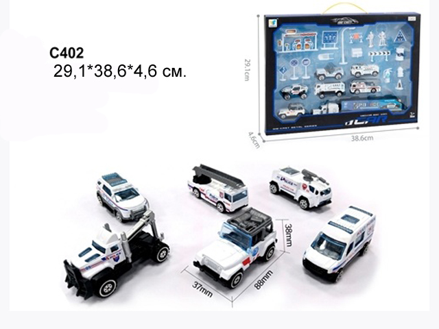 - Набор машин арт. 402C" Спецтехника метал. 6 шт. в кор. 29,1*38,6*4,6 /36шт.//бл.18/×Набор машин арт. 402C" Спецтехника метал. 6 шт. в кор. 29,1*38,6*4,6 /36шт.//бл.18/Набор из 7 машинок с подвижными элементами и различными дорожными знаками и ограждениями. В процессе игры ребенок развивает мелкую моторику, пространственное и образное мышление и тренирует воображение.