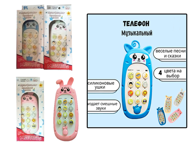 - Телефон арт. 551-807 "Зверята" музыкальный на батар. в кор.×Телефон арт. 551-807 "Зверята" музыкальный на батар. в кор.Детский музыкальный телефон в разные животные - отличный выход из положения, когда малыш мечтает о собственном смартфоне, точно таком же, как у родителей. Вам больше не придется жертвовать собственным аппаратом, чтобы прекратить капризы и успокоить ребенка, поскольку красочный развивающий телефон детский музыкальный со звуковыми эффектами надолго заинтересует и отвлечет сына или дочку. Музыкальный обучающий детский телефончик - это интерактивное устройство, с которым малыш будет совершать первые звонки, а так же познакомится с буквами и цифрами. Интерактивная игрушка способствует развитию мелкой моторики, воображения, мышления, слухового и зрительного восприятия. Ребенок может послушать звуки, забавные фразы и веселые песни.177.77 руб. 355.54 руб.